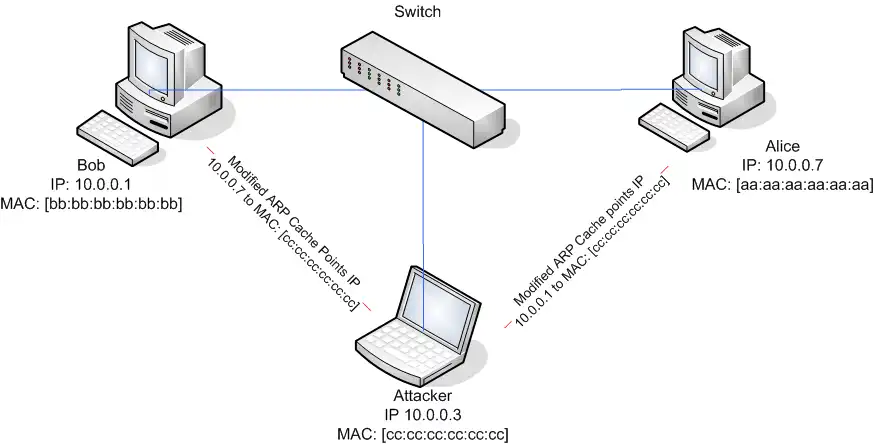 After the attacker’s MAC address is injected into a poisoned ARP table, any traffic sent to that IP address, will be routed to the attacker’s hardware instead of the real owner’s IP.